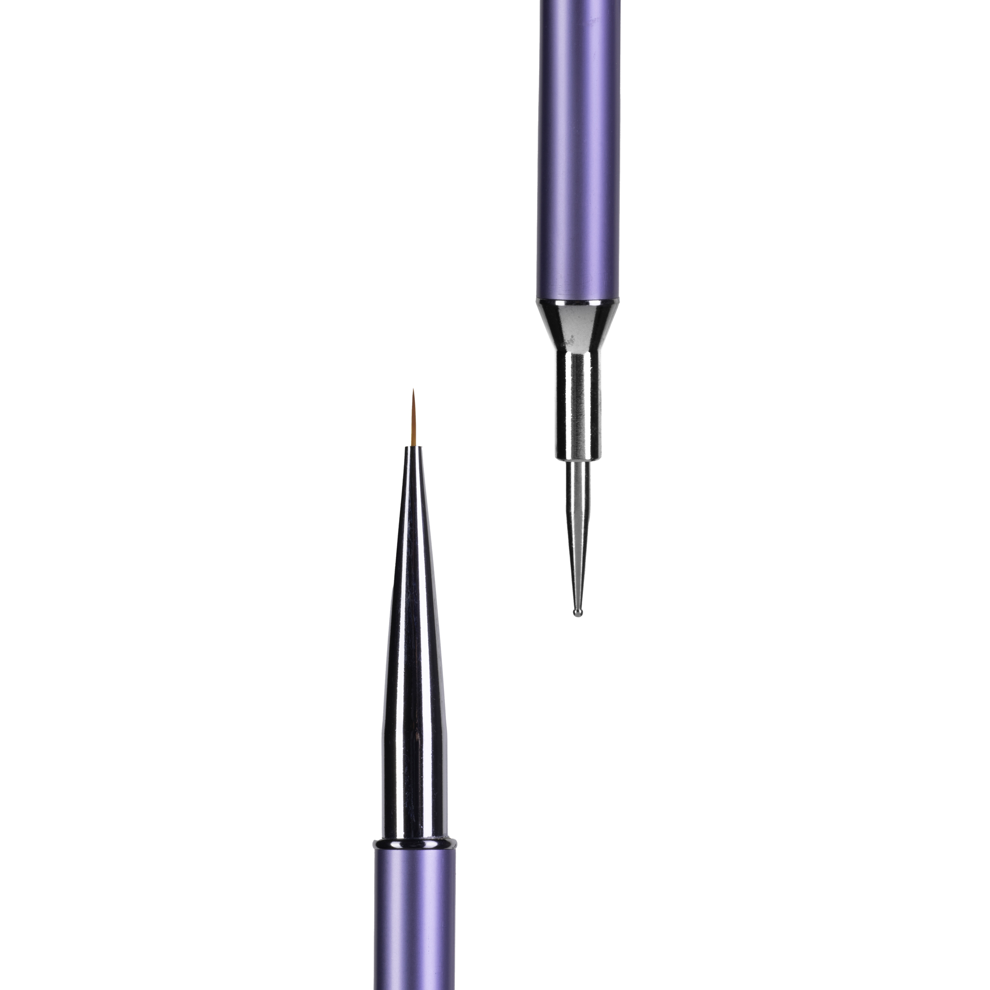 Pensula este realizată din peri sintetici, iar la capătul opus este instrumentul pentru crearea bulinelor pentru machiaje, desene grafice sau chiar pentru manichiuri și pedichiuri.