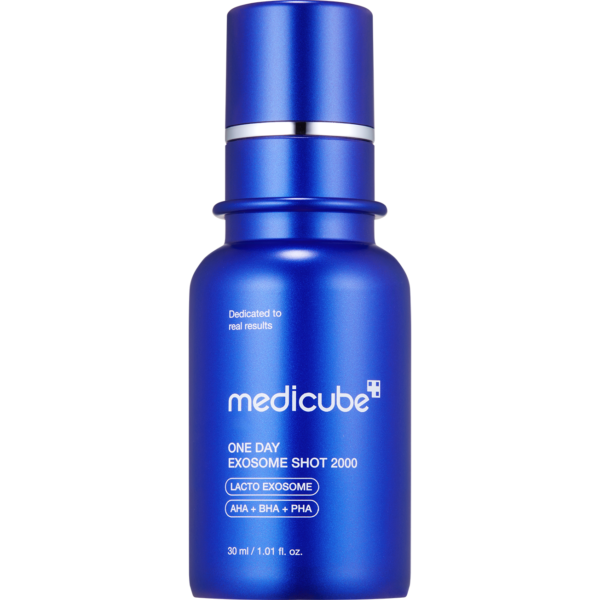 Medicube One Day Exosome Shot 2.000 PPM este un ser special pentru stimularea repararii pielii, cu exozomi, acizi AHA+BHA+PHA, care ajuta la retexturizarea pielii si diminuarea aspectului porilor mariti.