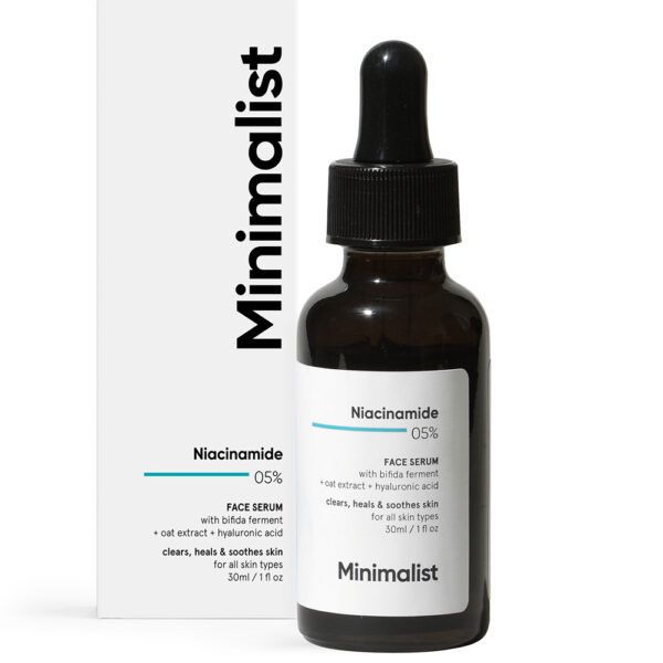 Minimalist Niacinamide 05% este un ser zilnic hrănitor și hidratant care repară bariera deteriorată și calmează pielea sensibilă.